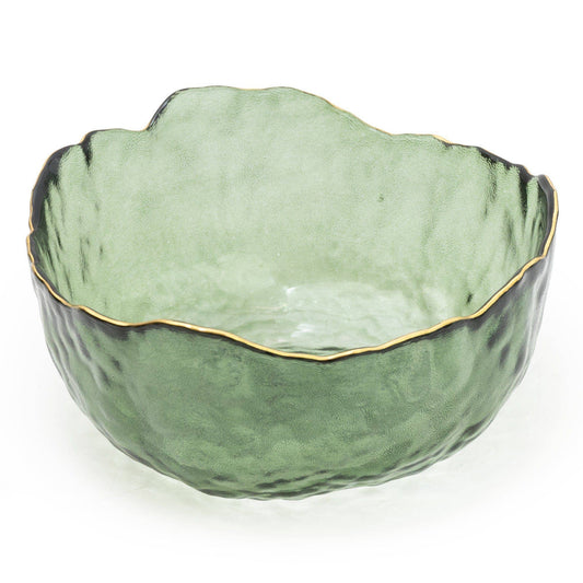 Sold outWavy Glass Bowl With Gold Rim | 20cm