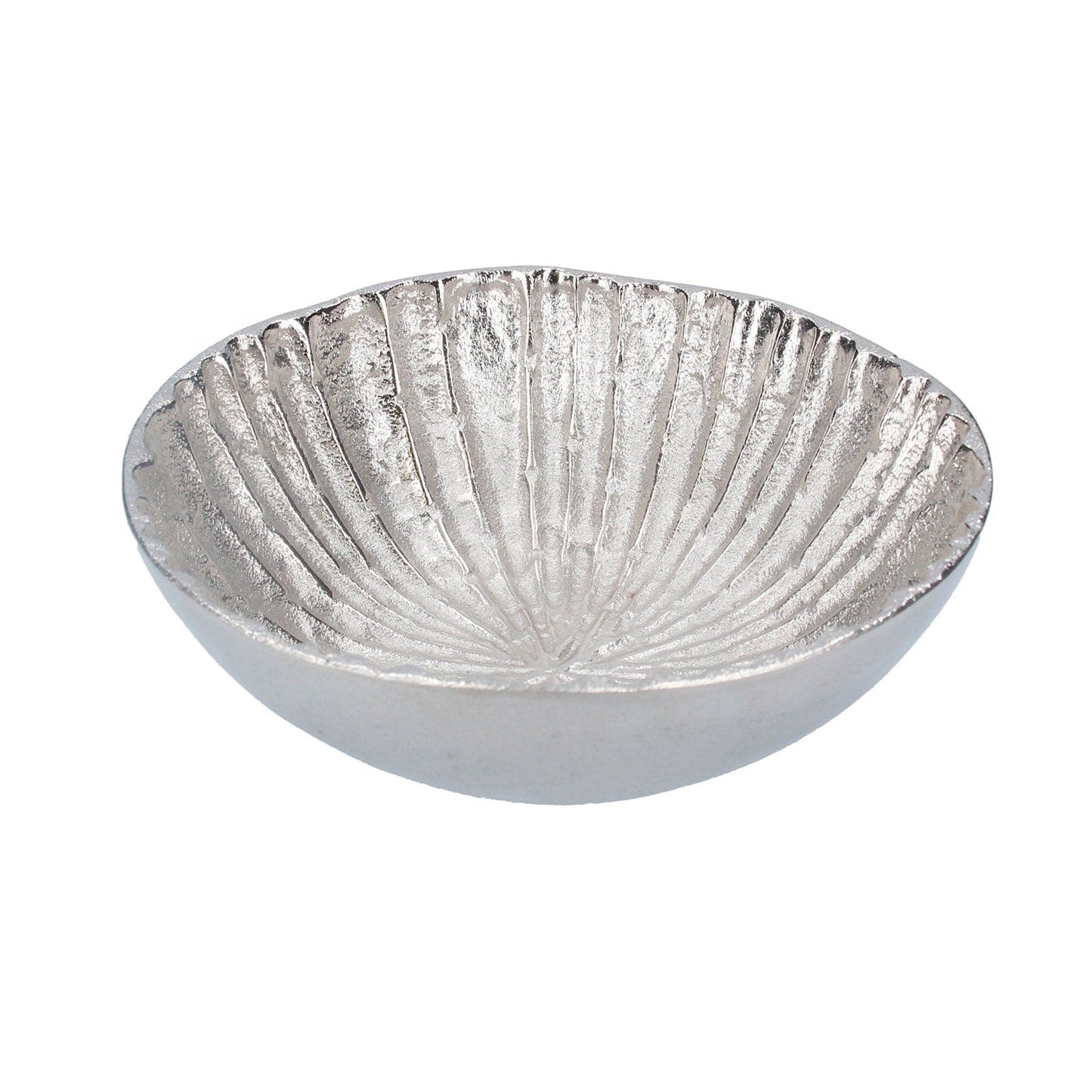 Hammered Metal Decorative Bowl 30cm - Silver Ribbed